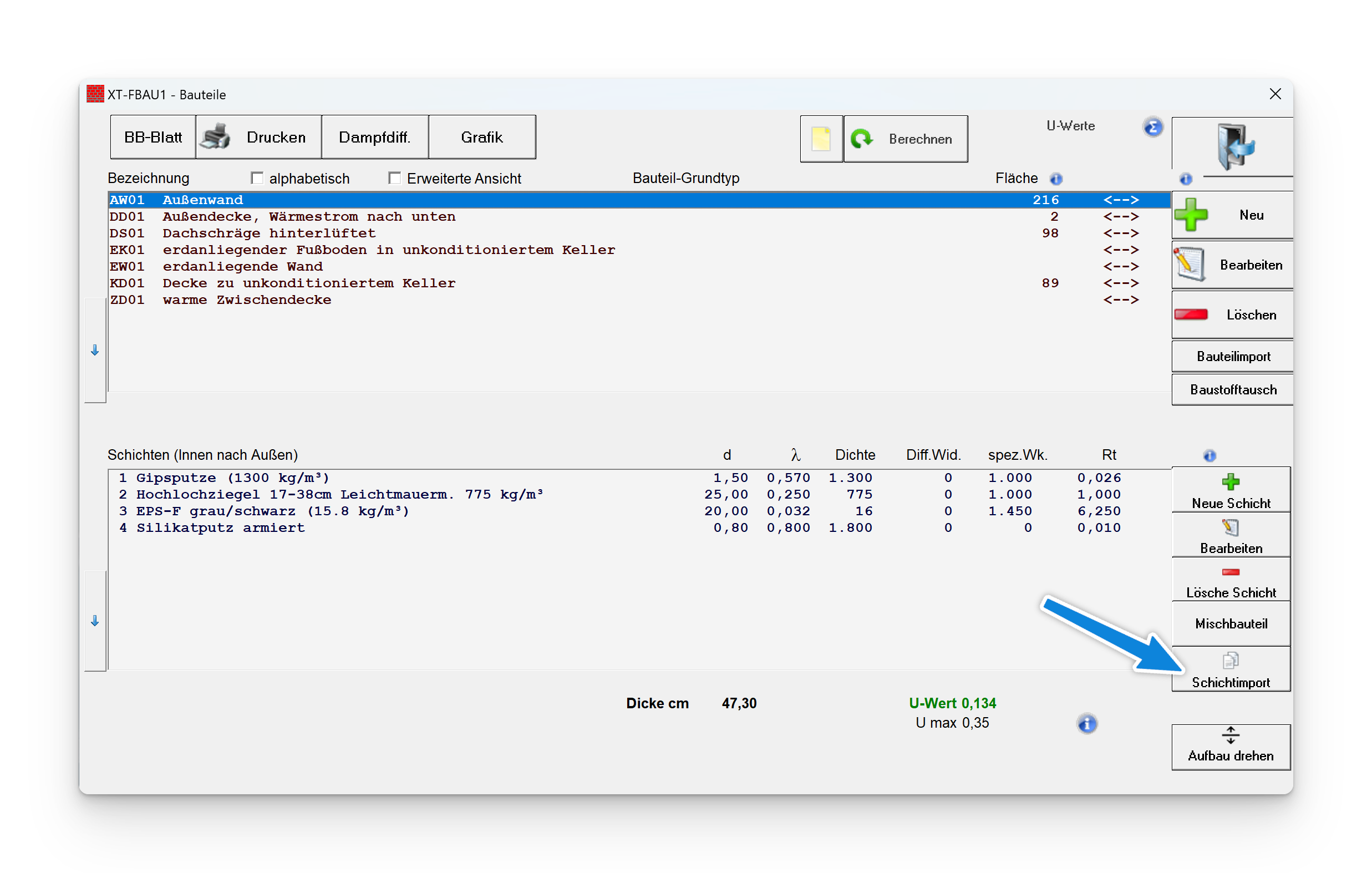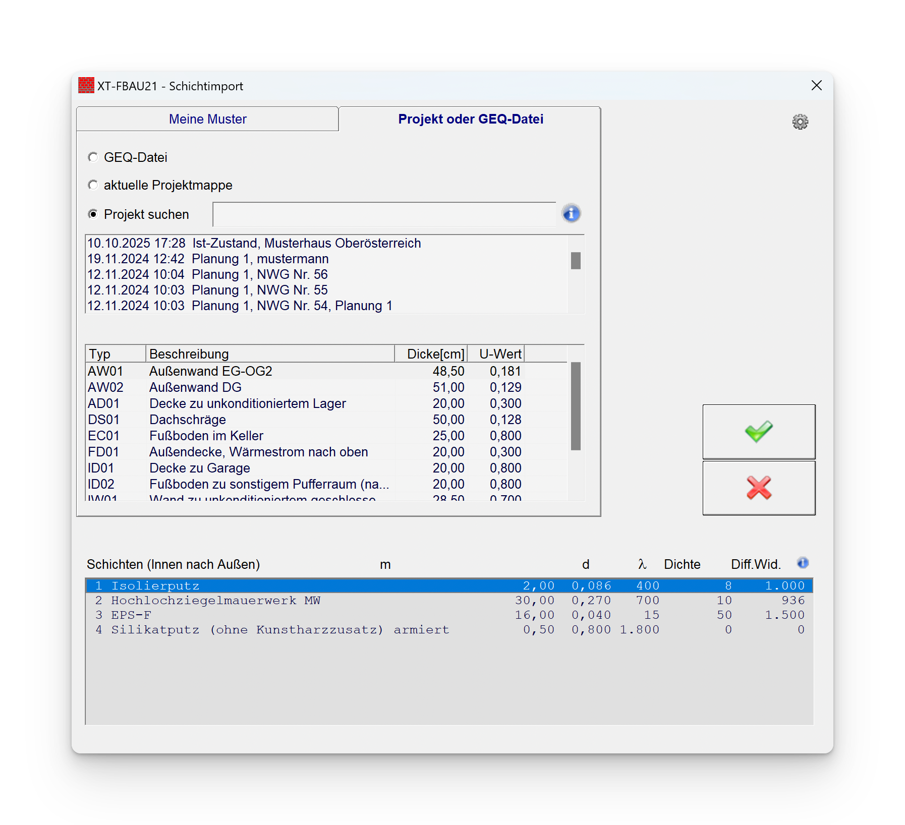 Für den Bauteilimport öffnen Sie das Projekt in dem sich der gewünschte Wand- oder Deckenaufbau befindet.