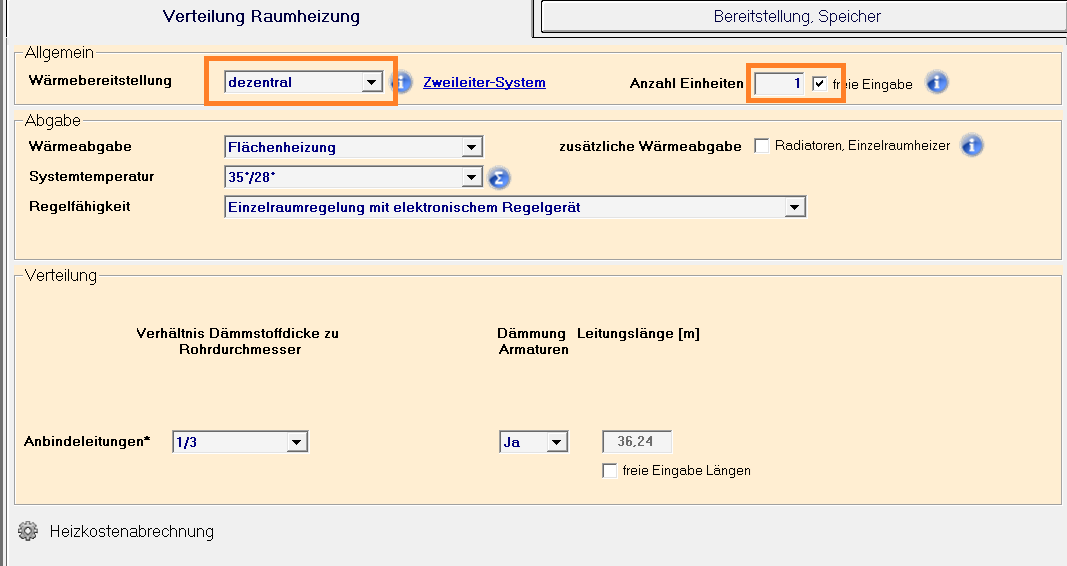 Sämtliche Leitungslängen des Raumheizungssystems sind wie für ein dezentrales Raumheizungssystem anzunehmen.