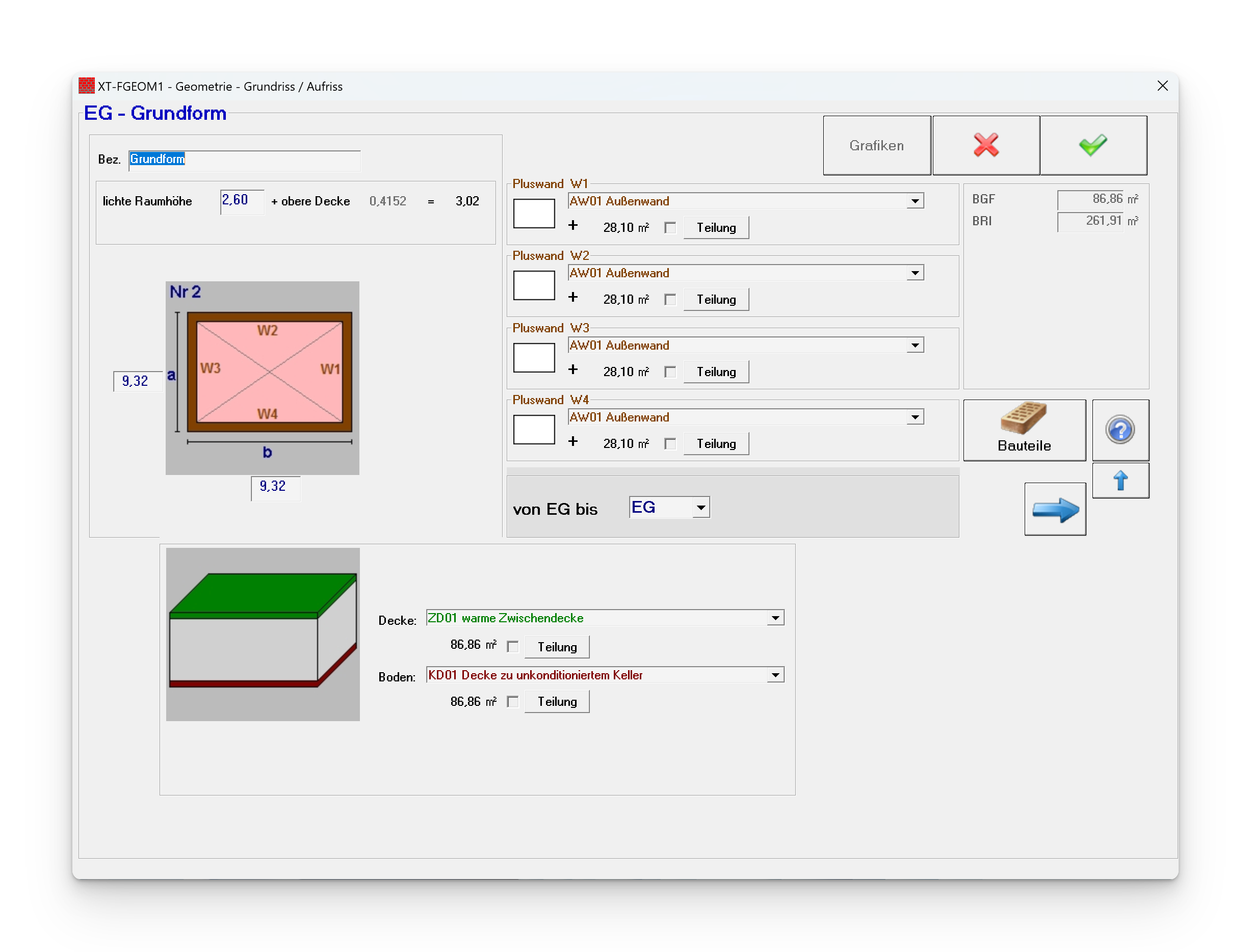 Eingabe des 1. Baukörpers