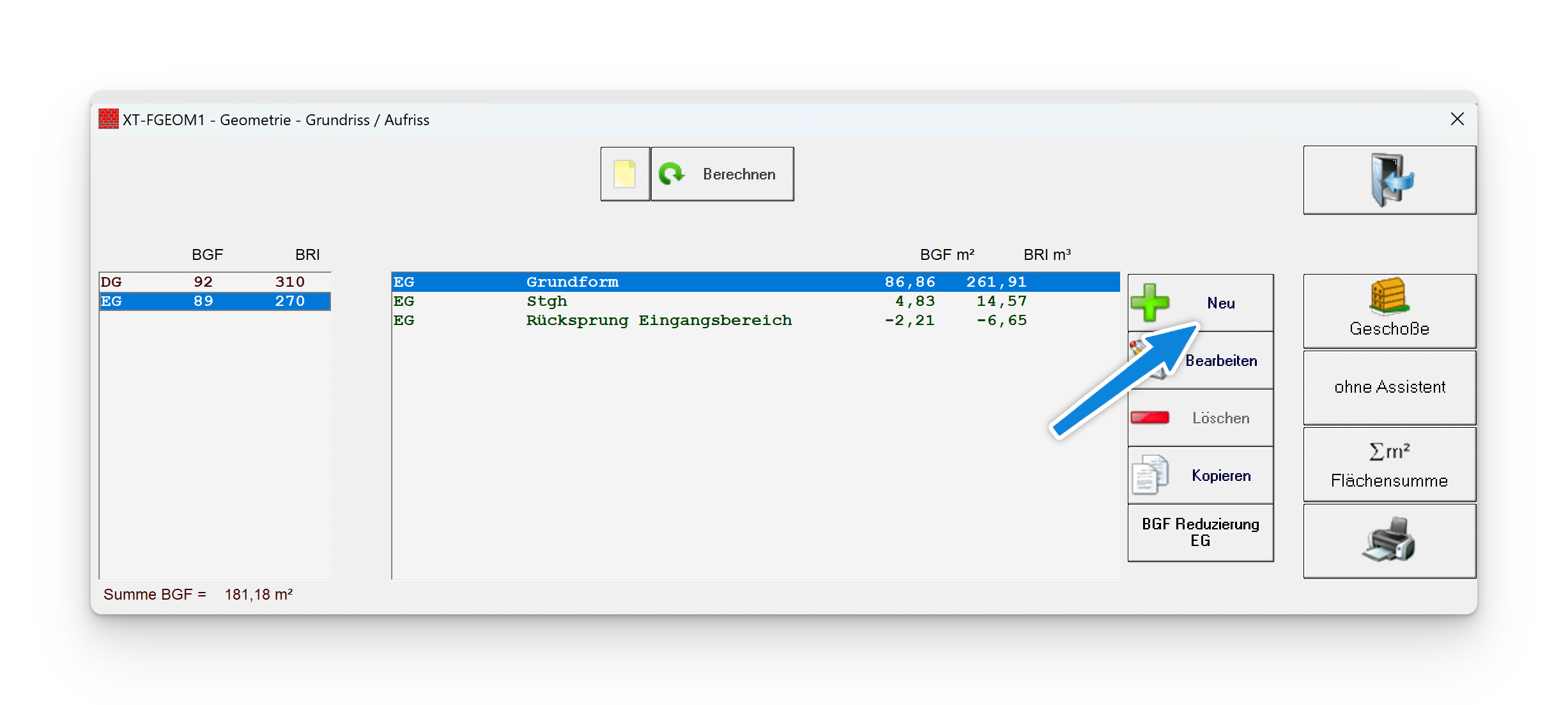 Schritt 3, über den Button „Neu“ kann ein neuer Baukörper angelegt werden: