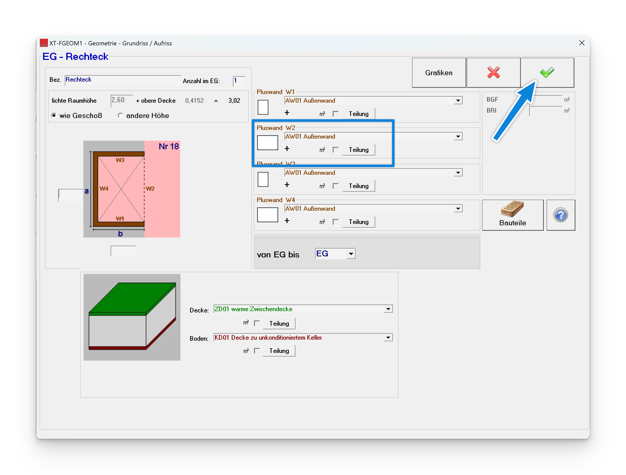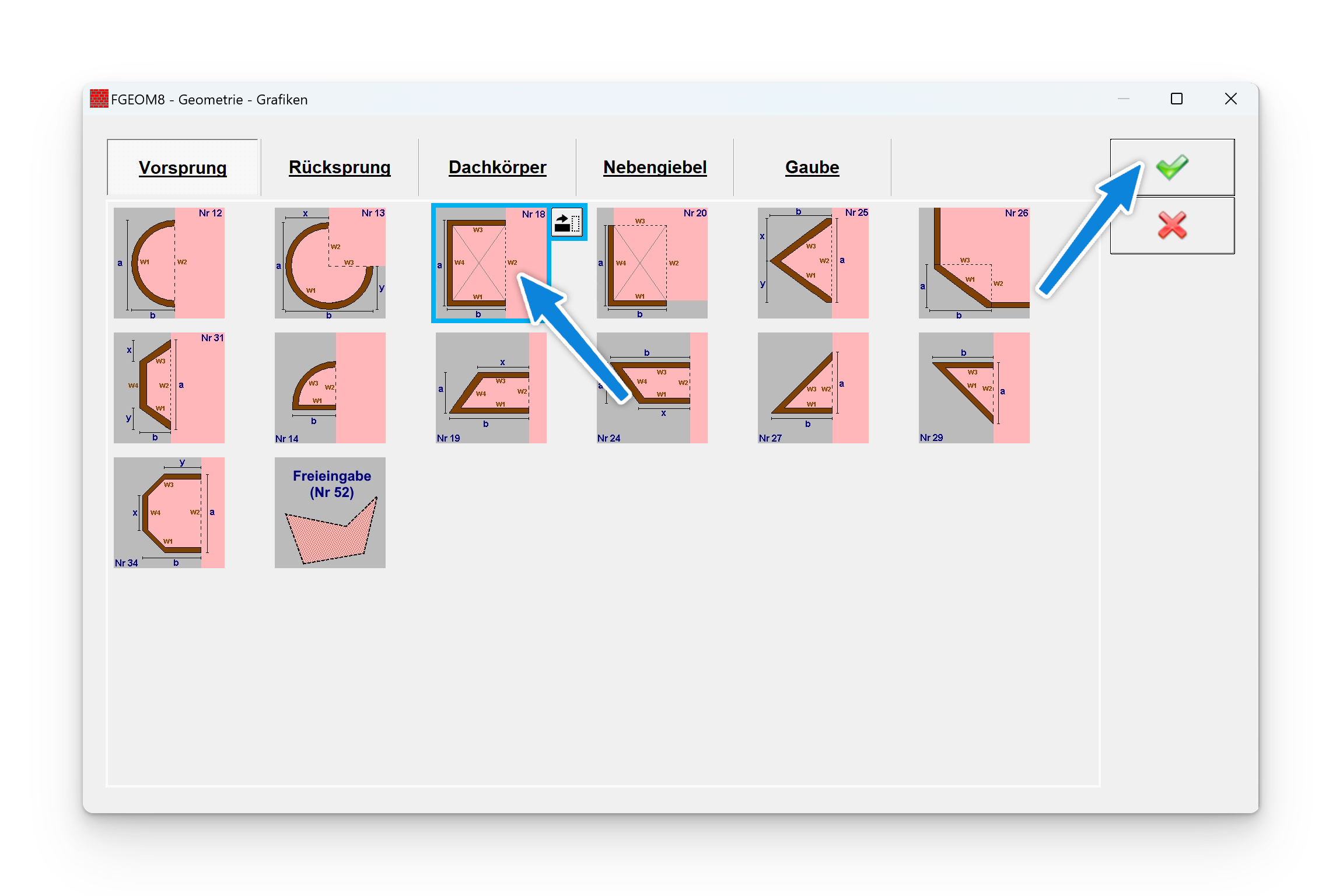 Schritt 4, Baukörper Nr.18 wählen: