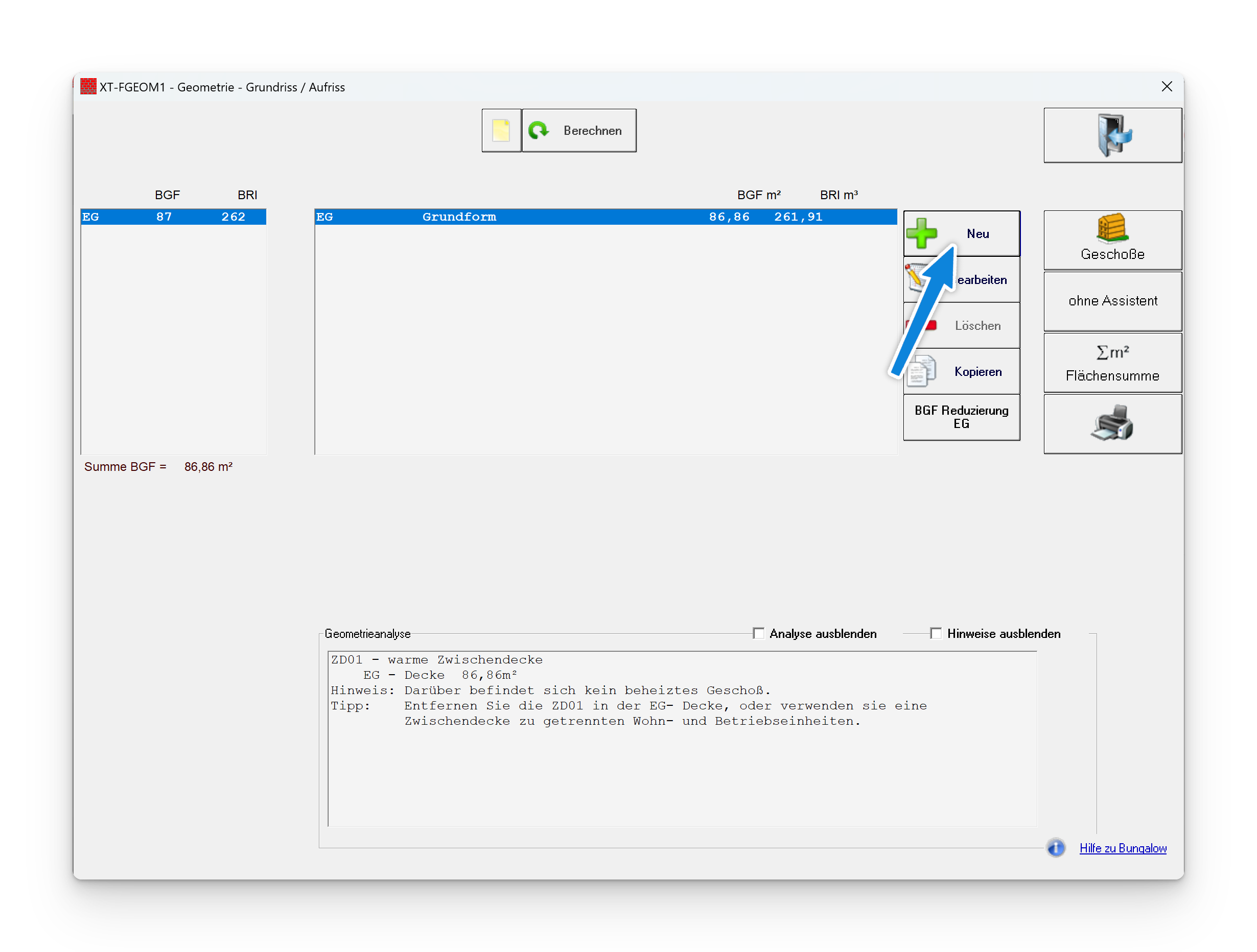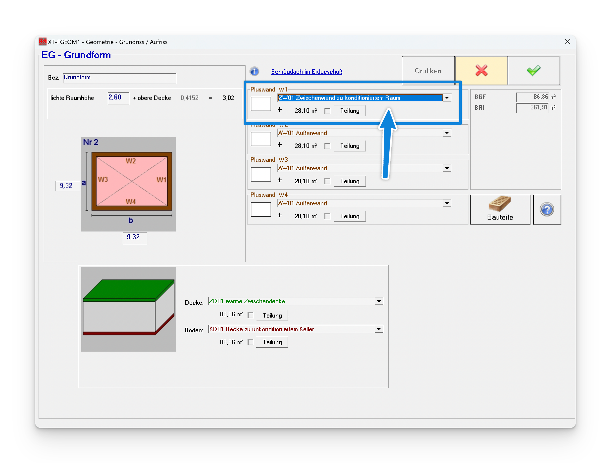 In der Geometrieeingabe dient die Grundform als Zubau I.
