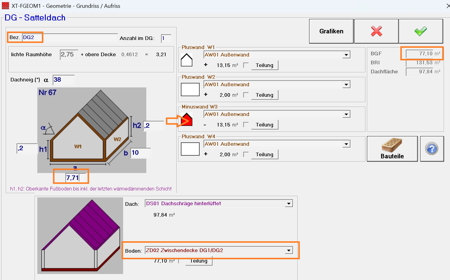 Wert a anpassen - die BGF sollte denselben Wert aufweisen wie der Wert Decke in Schritt 2.