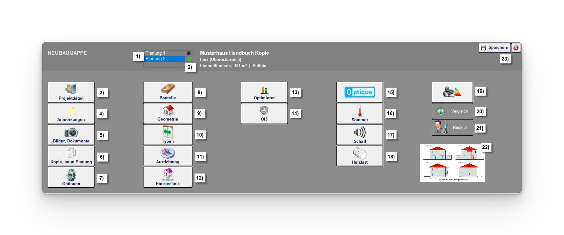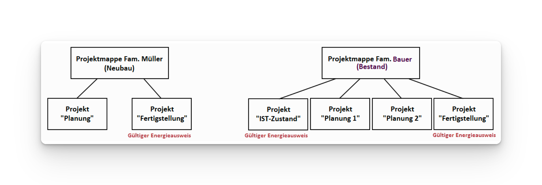 Hinweis: Eine Projektmappe stellt eine Zusammenfassung mehrerer Varianten dar (z.B. IST-Zustand, Sanierung…)