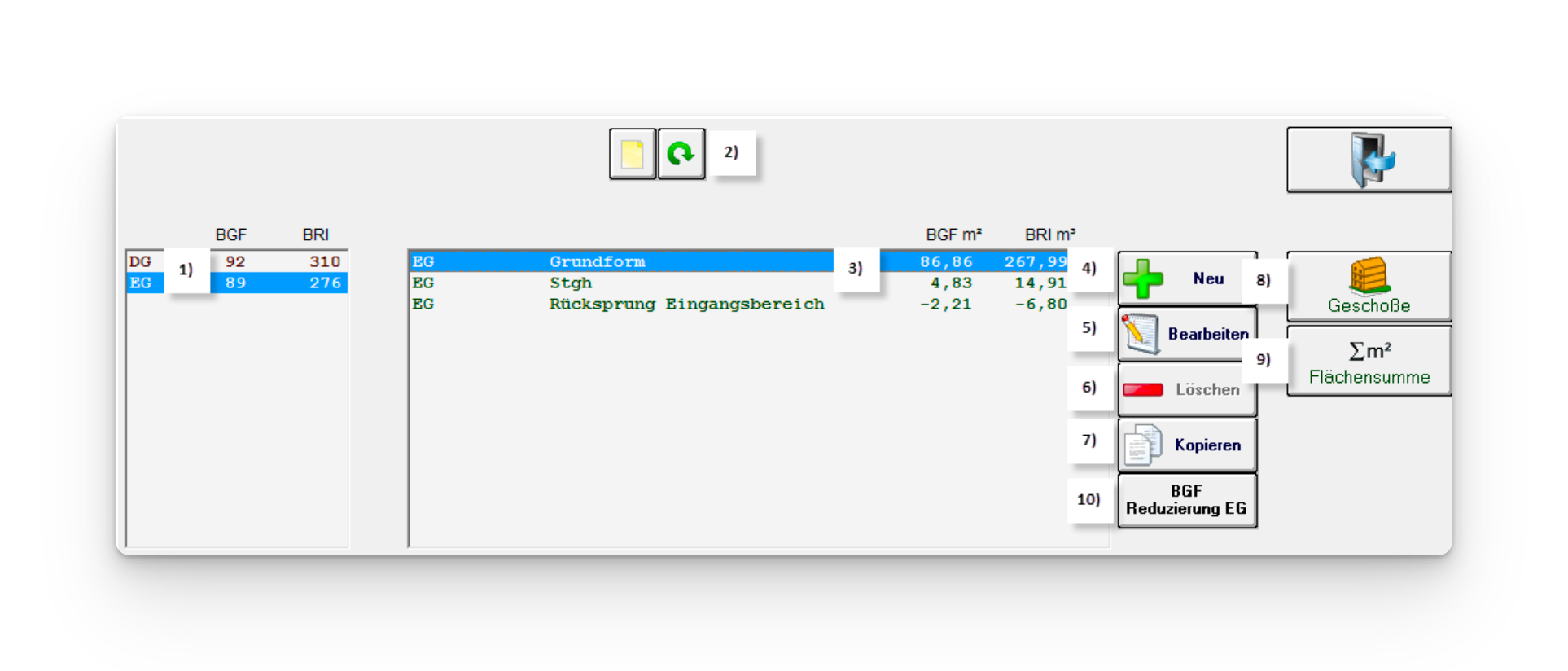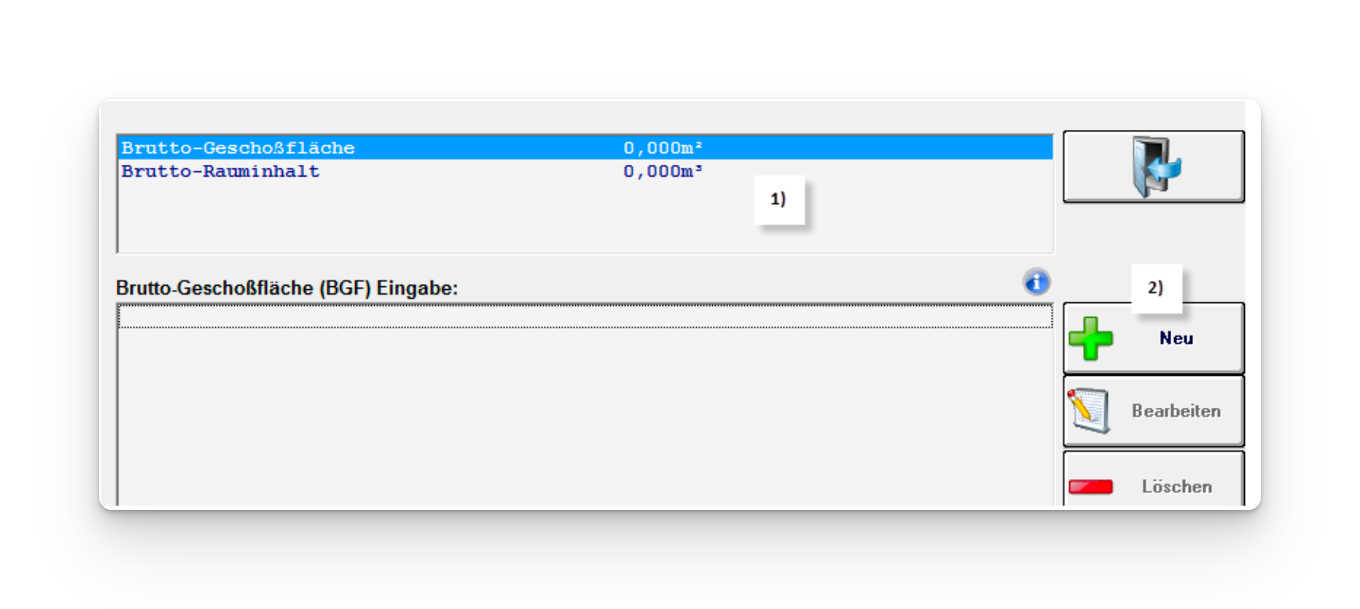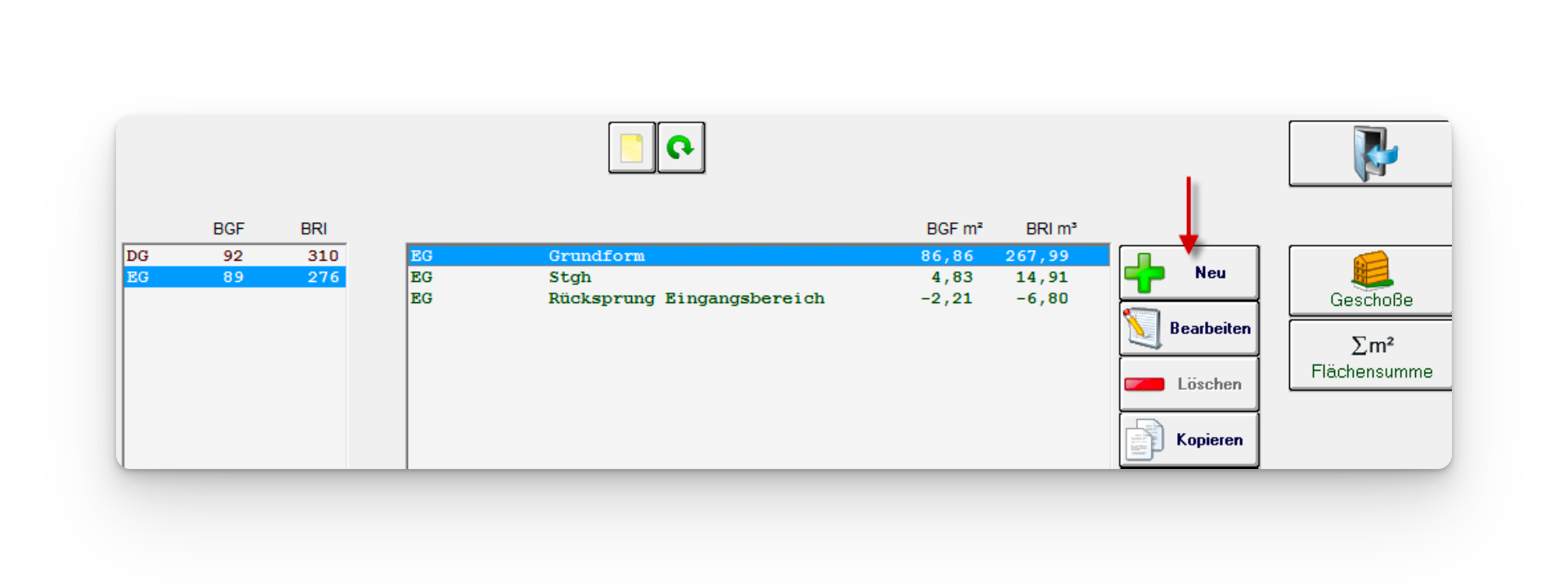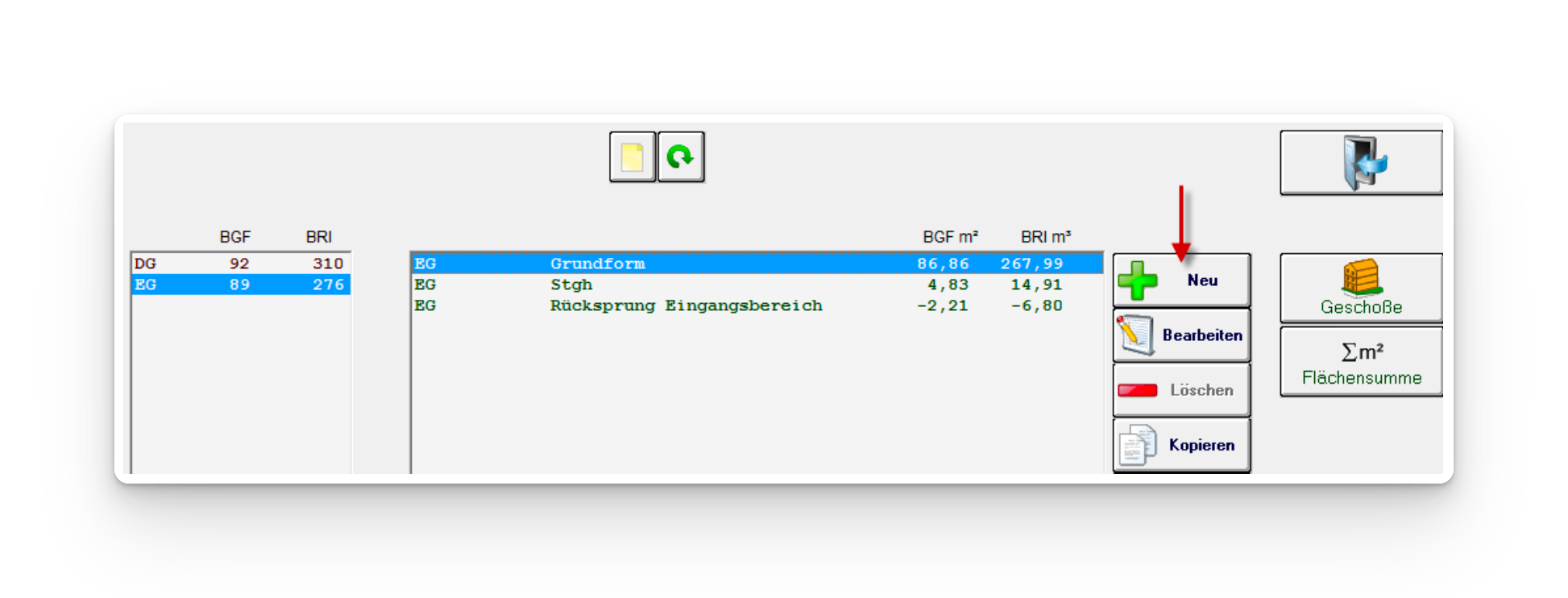 1) Brutto-Grundfläche auswählen und auf
