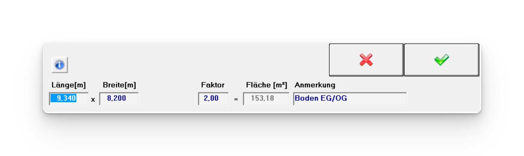 3) Eingabe Länge bzw. Eingabe Fläche