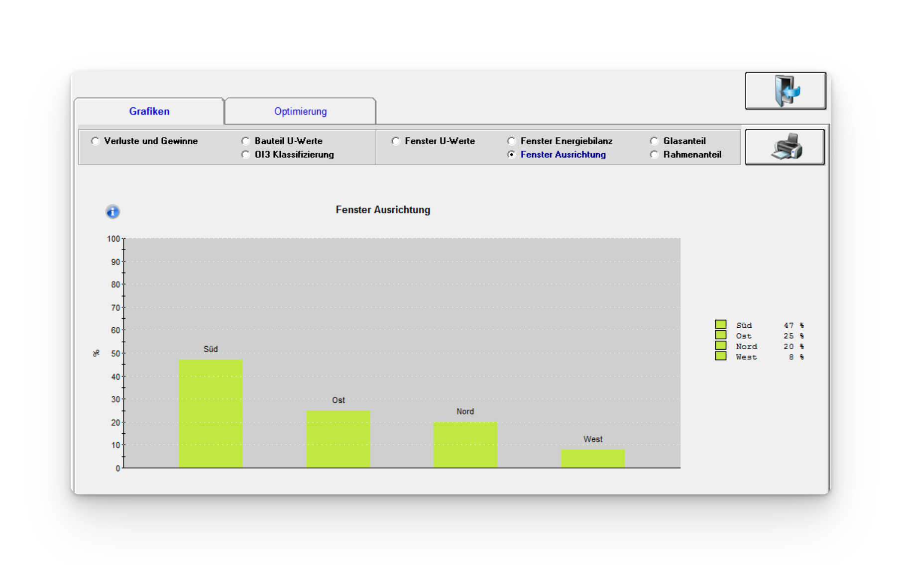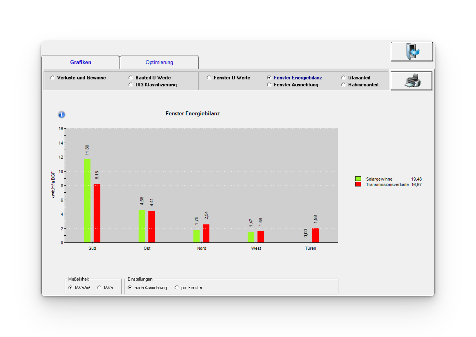Damit können die Fenster detailliert je Himmelsrichtung analysiert werden.