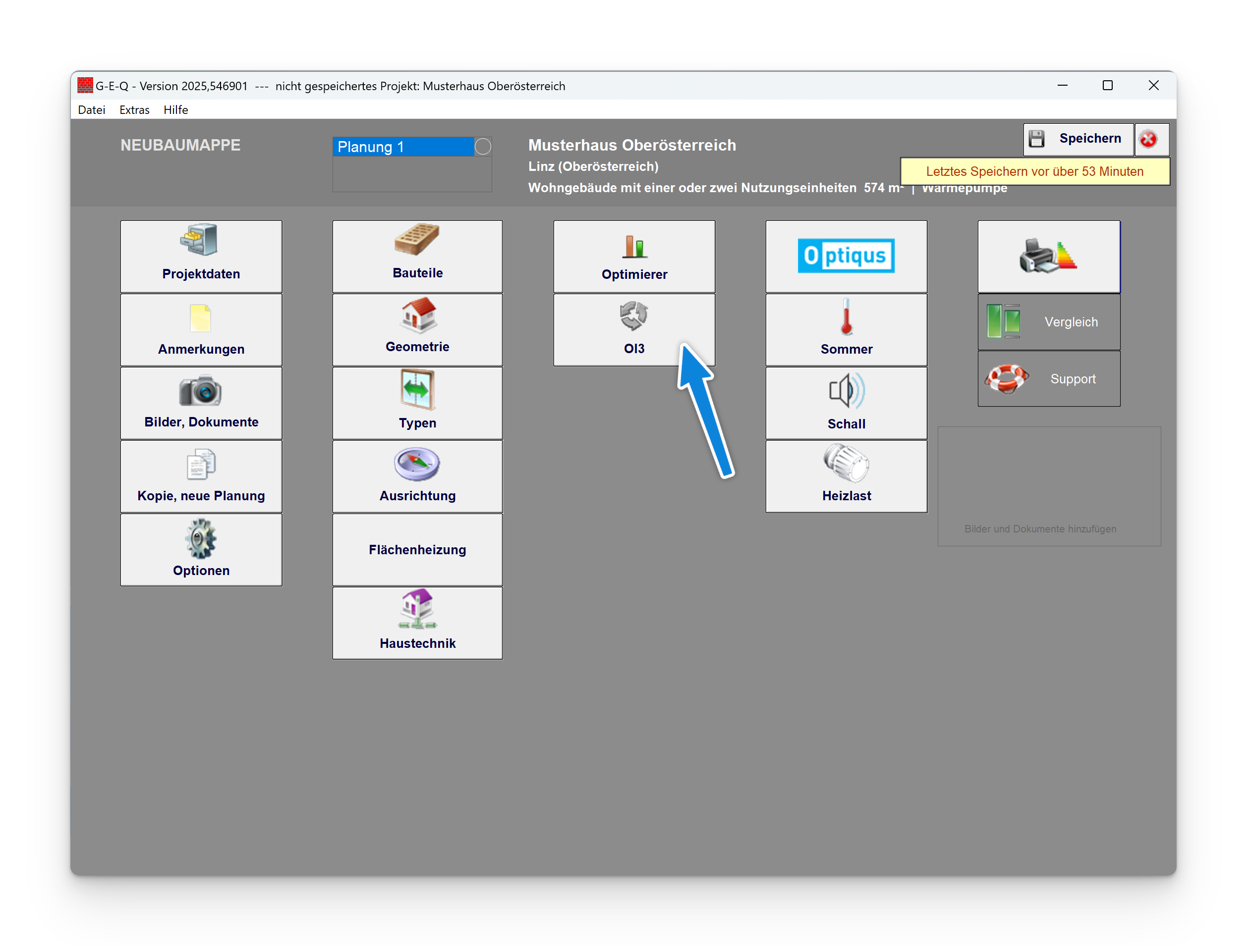 Eingabe von Räumen (Bauteilen und Flächen) welche nicht bereits im Energieausweis oder in der vereinfachten Berechnung IW/Beläge/UG erfasst sind.
