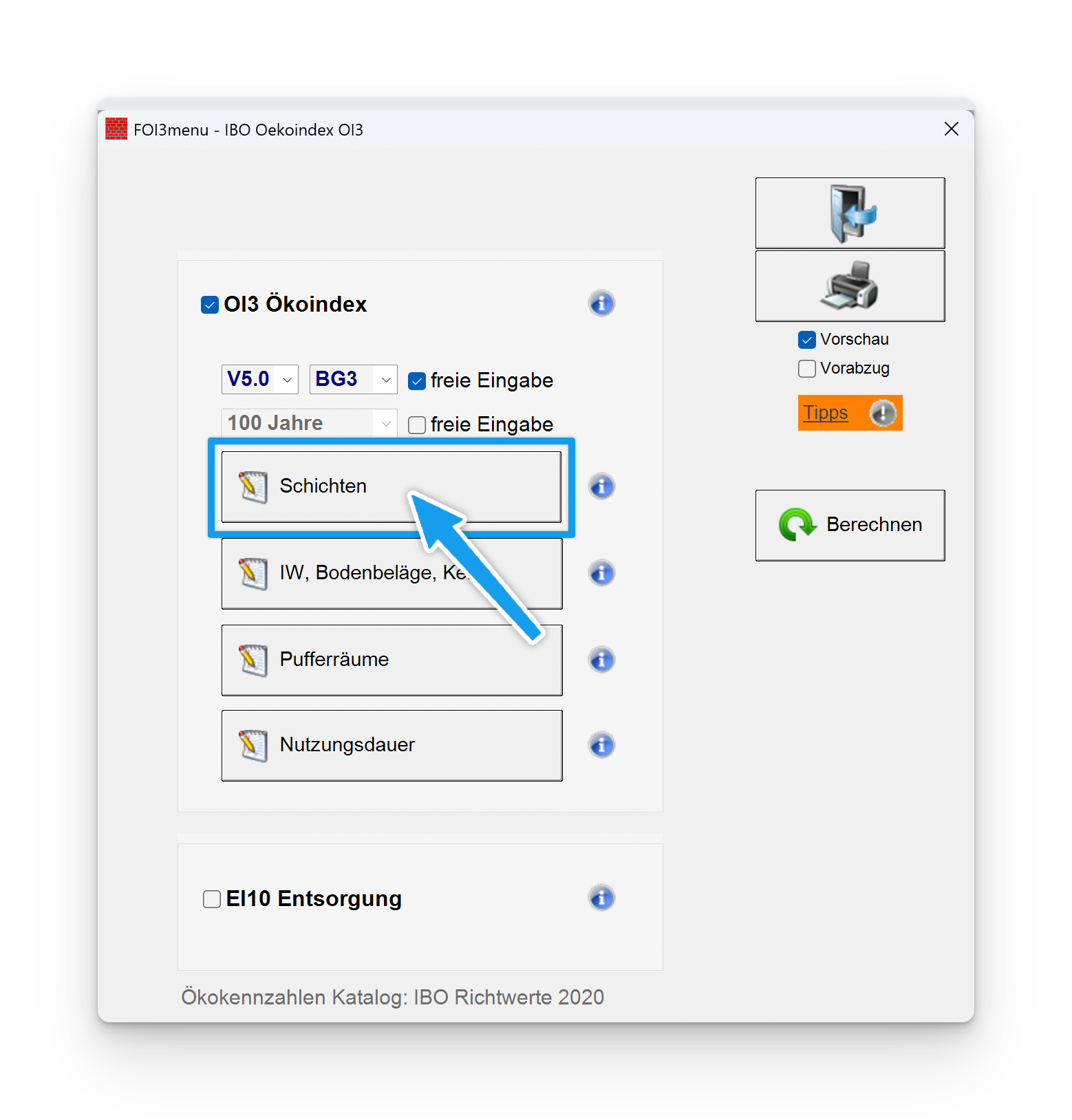 Jede Bauteilschicht muss einer Schicht mit OI3 Kennwerten zugeordnet werden.