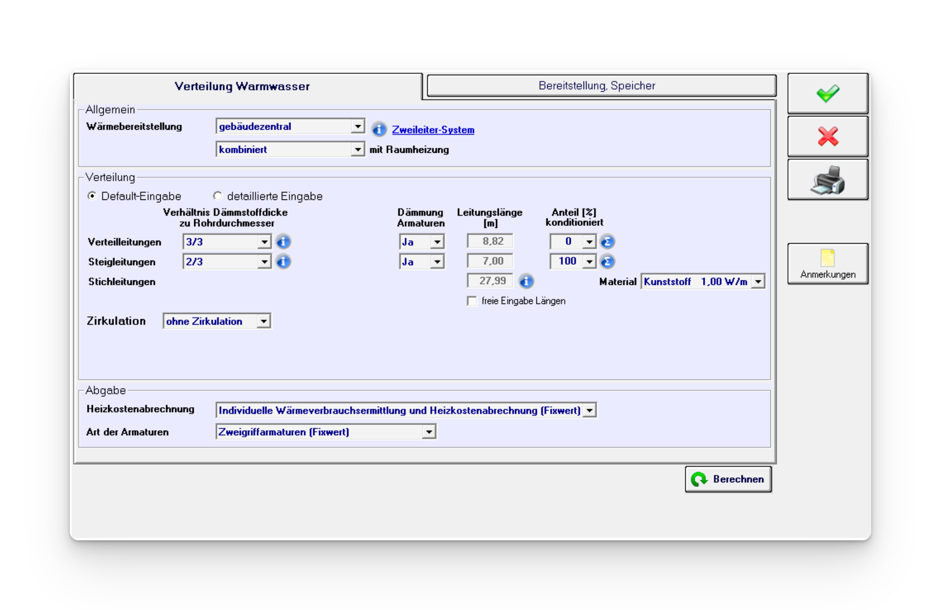 Optional ist eine detaillierte Eingabe der Leitungen oder eine freie Eingabe der Leitungslängen möglich.