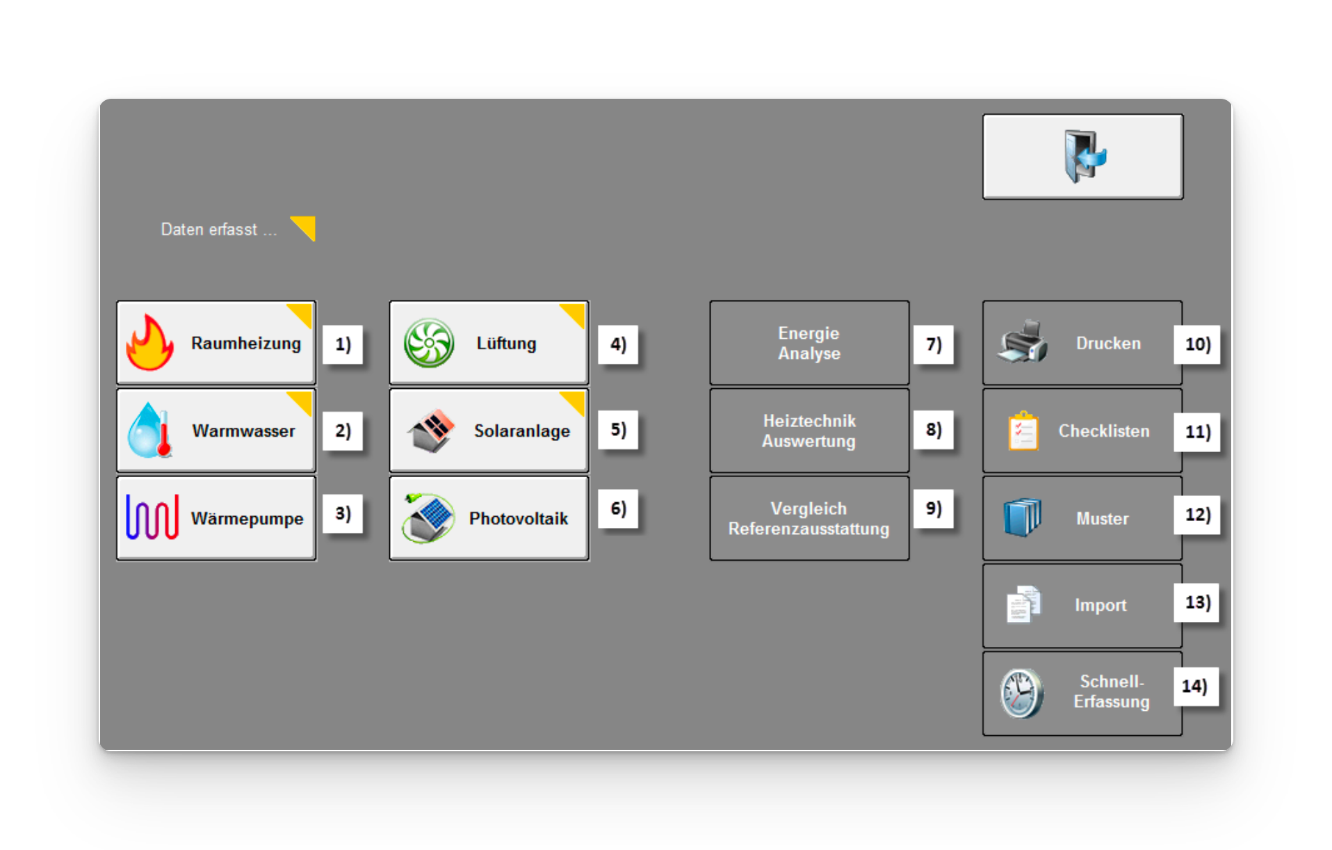 Die Schnellerfassung erlaubt eine zügige Eingabe aller benötigten Haustechnikdaten in einem Schritt.