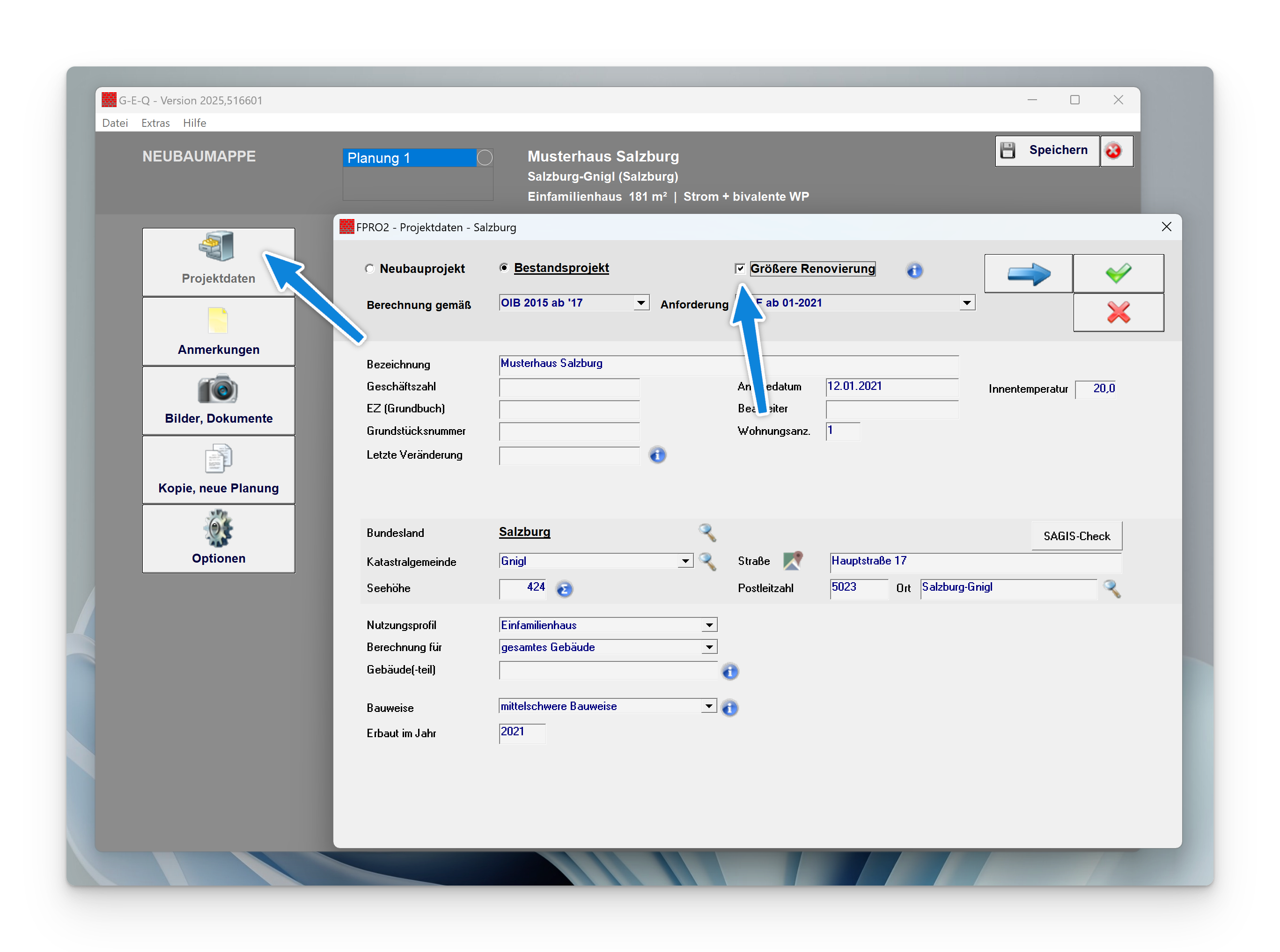 Tipp: ggf. „größere Renovierung“ aktivieren (Projektdaten)